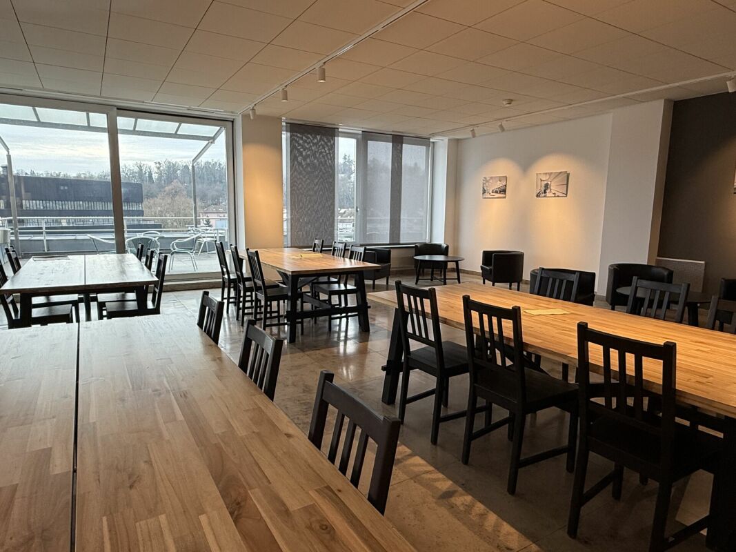 Das Angebot wird durch die Möglichkeit der Mitbenutzung eines Aufenthaltsraums mit Dachterrasse ergänzt.